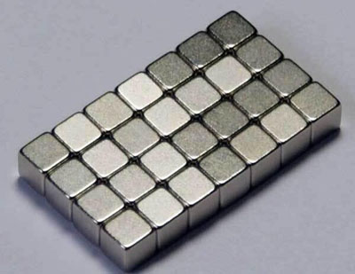 稀土材料因為具備非常好的磁特性,對于制備風力渦輪機,電動汽車和混合動力汽車以及家用電子器件至關重要。但是同時他們也具有價格敖貴和來源單一(只有中國有)的特點。然而,根據(jù)美國電子能源公司的消息,電動機使用磁鐵將電能轉換成機械能,一個很小尺寸的燒結的稀土磁體便能夠產生非常強大的磁場,這使制造商能夠制備更小和更輕的汽車成為可能。這家公司已經與美國特拉華大學研究人員合作以尋找一種能夠將稀土磁鐵的電阻率提高至少30%的制備工藝。他們的目標是利用電阻率增加的磁鐵即使在汽車高速運轉時也能降低發(fā)動機的效率損失。上圖便是塊狀的鍍鎳的釹磁鐵,是世界上使用最廣泛的一種稀土磁鐵之一。