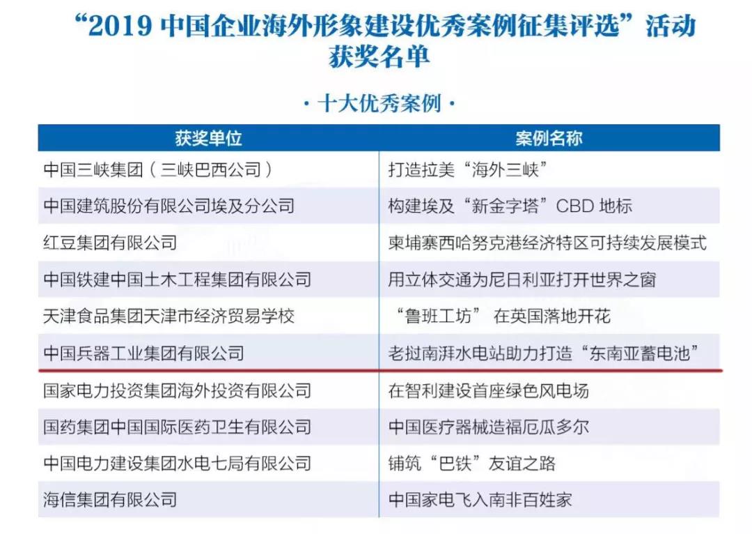 兵器工業(yè)集團(tuán)海外項(xiàng)目榮獲2019中國(guó)企業(yè)海外形象建設(shè)十大優(yōu)秀案例及卓越社會(huì)責(zé)任獎(jiǎng) |