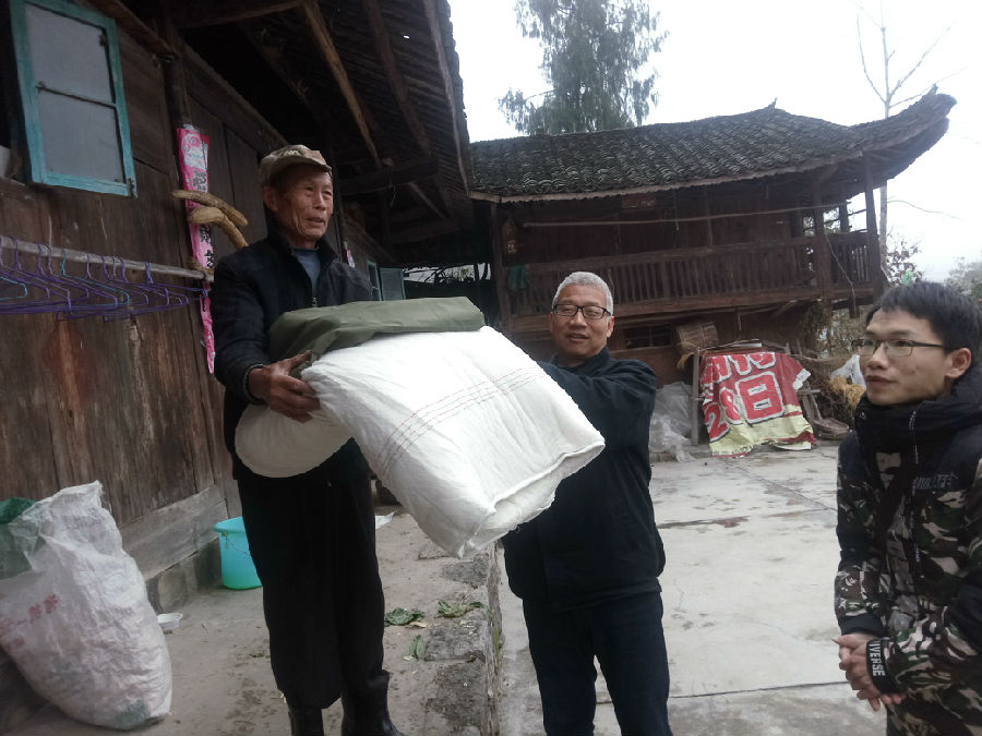 朱利慶為搬遷新家的建檔立卡貧困戶(hù)送上新被子和祝福
