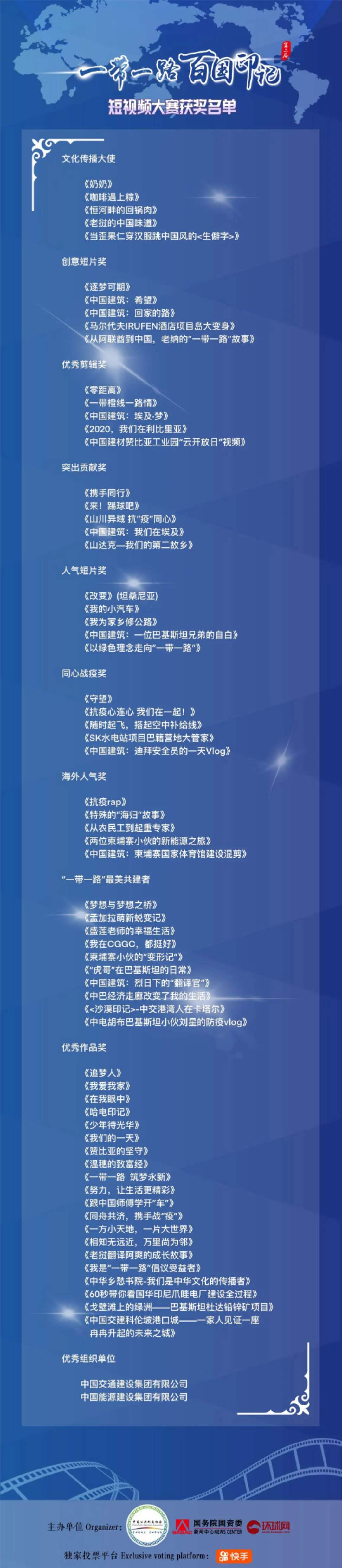 近日,由中國公共外交協(xié)會(huì)、國務(wù)院國資委新聞中心和環(huán)球網(wǎng)聯(lián)合主辦的第二屆“一帶一路”百國印記短視頻大賽獲獎(jiǎng)名單揭曉,中國兵器工業(yè)集團(tuán)北方公司兩部作品獲獎(jiǎng),其中《一帶橙線一路情》榮獲“優(yōu)秀剪輯獎(jiǎng)”,《溫穗的致富經(jīng)》榮獲“優(yōu)秀作品獎(jiǎng)”。 《一帶橙線一路情》 《一帶橙線一路情》講述的巴基斯坦拉合爾橙線軌道交通項(xiàng)目是“一帶一路”倡議下中巴經(jīng)濟(jì)走廊首個(gè)簽約的基礎(chǔ)設(shè)施項(xiàng)目,也是巴基斯坦第一條城市軌道交通項(xiàng)目。橙線項(xiàng)目建設(shè)和實(shí)施過程中,北方國際廣泛運(yùn)用中國標(biāo)準(zhǔn)、中國技術(shù)、中國裝備,高質(zhì)量的設(shè)計(jì)和建設(shè)得到了巴方合作伙伴的高度贊譽(yù),被拉合爾當(dāng)?shù)厥忻裼H切稱為“來自中國兄弟的一份厚禮”。 《溫穗的致富經(jīng)》 《溫穗的致富經(jīng)》聚焦隨著緬甸萊比塘銅礦開發(fā)不斷深入,萬寶礦產(chǎn)推出“社區(qū)社會(huì)發(fā)展”計(jì)劃并施行了一系列惠民政策,幫助吳溫穗這名普通當(dāng)?shù)卮迕耖_起了擁有7.5萬只蛋雞的現(xiàn)代化養(yǎng)殖場。如今的吳溫穗,儼然成為了率先致富的農(nóng)村企業(yè)家。吳溫穗深信,項(xiàng)目不僅讓村民過上了以往不敢想的好日子,更教會(huì)了他們致富之道,項(xiàng)目和村民的未來都會(huì)更加美好。 本屆大賽獲得了眾多參與“一帶一路“發(fā)展建設(shè)的大型企事業(yè)單位及個(gè)人的響應(yīng),共征集了來自近80個(gè)國家的500余部參賽作品。經(jīng)過公眾投票與專家評(píng)審的兩輪角逐,本屆大賽最終評(píng)選出文化傳播大使獎(jiǎng)、創(chuàng)意短片獎(jiǎng)、優(yōu)秀剪輯獎(jiǎng)、突出貢獻(xiàn)獎(jiǎng)、人氣短片獎(jiǎng)、同心戰(zhàn)疫獎(jiǎng)、海外人氣獎(jiǎng)各5名,“一帶一路”最美共建者 10名,優(yōu)秀組織單位 2個(gè),優(yōu)秀作品獎(jiǎng)20名。