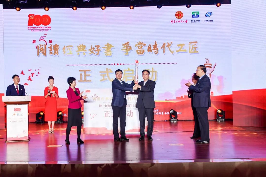 第五屆“閱讀經(jīng)典好書(shū) 爭(zhēng)當(dāng)時(shí)代工匠”全國(guó)工會(huì)職工書(shū)屋主題閱讀交流活動(dòng)正式啟動(dòng),現(xiàn)場(chǎng)進(jìn)行火炬?zhèn)魇?/p>