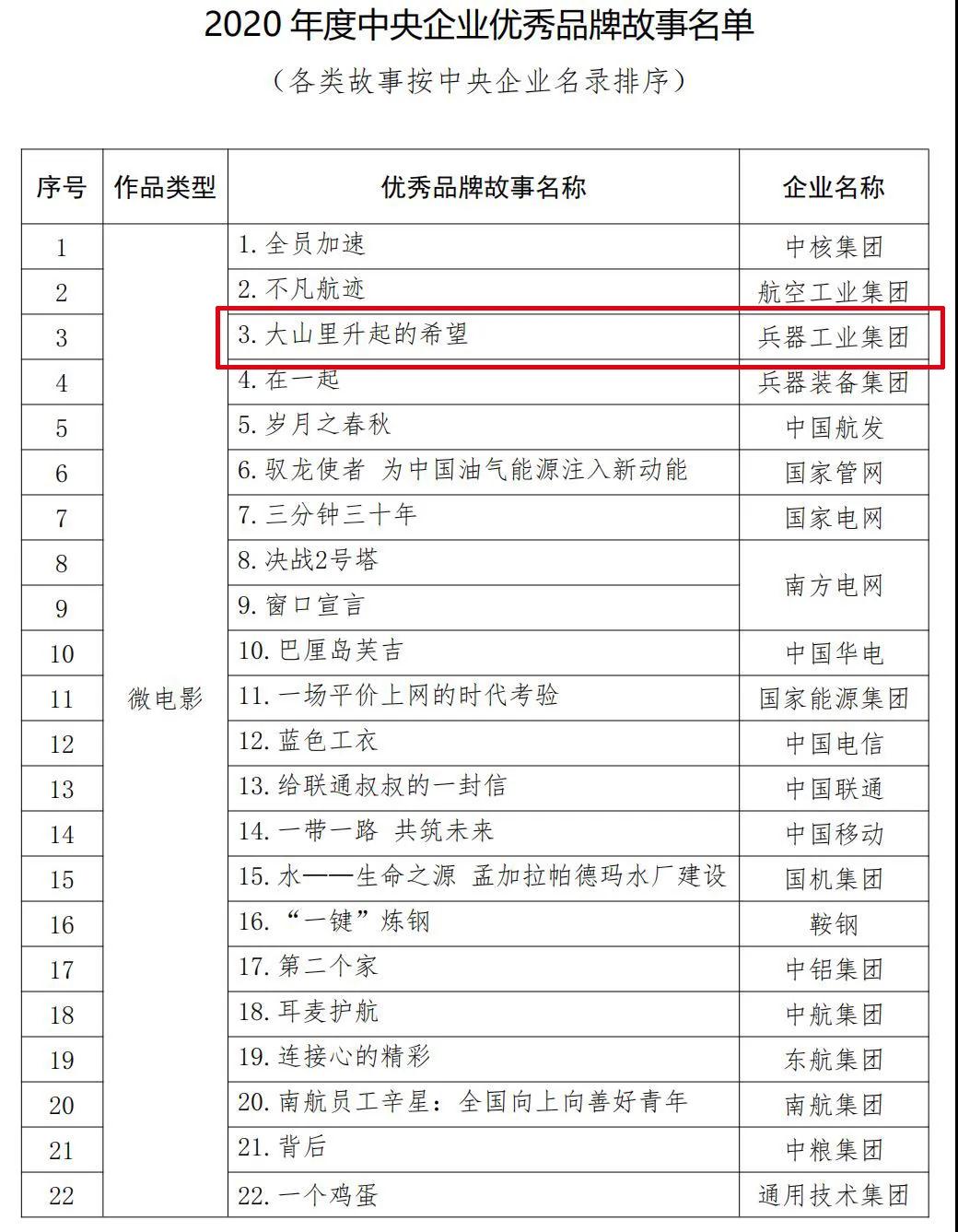 兵器工業(yè)集團(tuán)品牌建設(shè)案例入選2020年度100個(gè)國(guó)有企業(yè)品牌建設(shè)典型案例和100個(gè)優(yōu)秀品牌故事