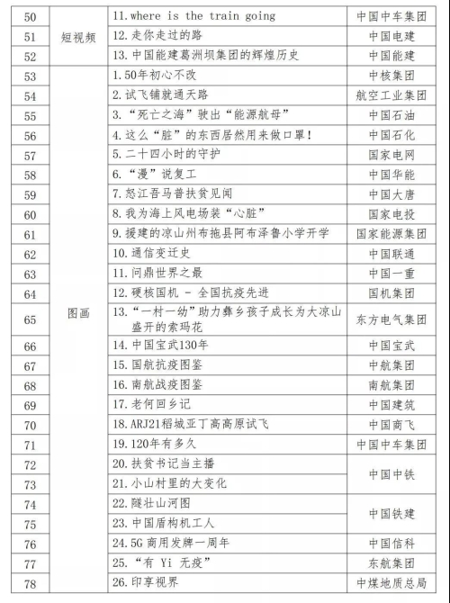 2020年度100個(gè)國(guó)有企業(yè)