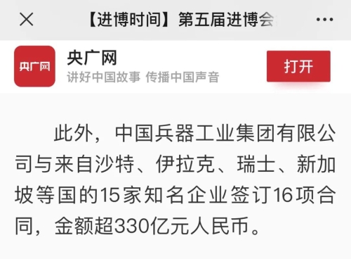 北京時(shí)間:第五屆進(jìn)博會:兵器工業(yè)集團(tuán)現(xiàn)場采購簽約金額超330億元人民幣