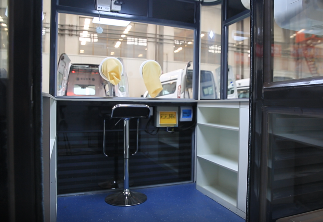 核酸采樣工作站長、寬各2.3米,高2.7米,下部由鋁合金等復合材料搭建,上部四圍鑲嵌厚厚的透明玻璃,像一個小型的全封閉流動崗亭。整個工作站包括艙體、正壓新風系統(tǒng)、消毒系統(tǒng)、空調(diào)、對講系統(tǒng)、采樣系統(tǒng)、登記系統(tǒng)、低溫轉(zhuǎn)運箱、儲物柜、滅火器等,可實現(xiàn)一側(cè)登記、一側(cè)采樣,醫(yī)護人員和受采者完全隔離,避免醫(yī)護人員感染,其舒適的工作環(huán)境同樣有利于提高采樣效率。