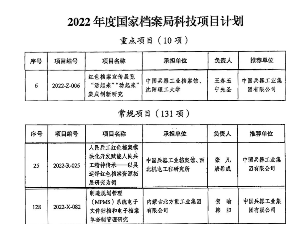 兵器工業(yè)集團(tuán)有關(guān)單位獲批國(guó)家檔案局三項(xiàng)科技項(xiàng)目