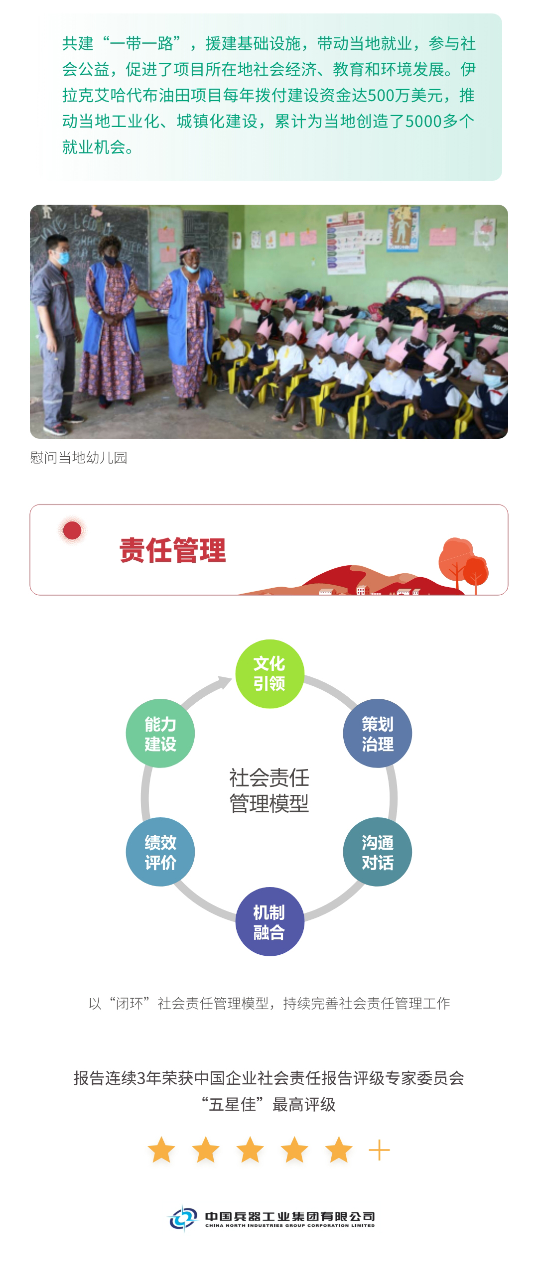 近日,兵器工業(yè)集團(tuán)正式發(fā)布第十三份年度社會(huì)責(zé)任報(bào)告——《中國(guó)兵器工業(yè)集團(tuán)有限公司2021年社會(huì)責(zé)任報(bào)告》,以“用心守護(hù)和平、用力爭(zhēng)創(chuàng)一流、用情溫暖社會(huì)”為主題,從恪守強(qiáng)軍首責(zé)、服務(wù)經(jīng)濟(jì)建設(shè)、共創(chuàng)美好生活三個(gè)維度,向社會(huì)全面披露2021年度履責(zé)實(shí)踐和履責(zé)業(yè)績(jī)。《報(bào)告》連續(xù)第三年獲得中國(guó)企業(yè)社會(huì)責(zé)任報(bào)告評(píng)級(jí)專家委員會(huì)“五星佳”評(píng)級(jí),兵器工業(yè)集團(tuán)成為軍工行業(yè)唯一連續(xù)11年獲得五星及五星佳最高評(píng)級(jí)的企業(yè)。