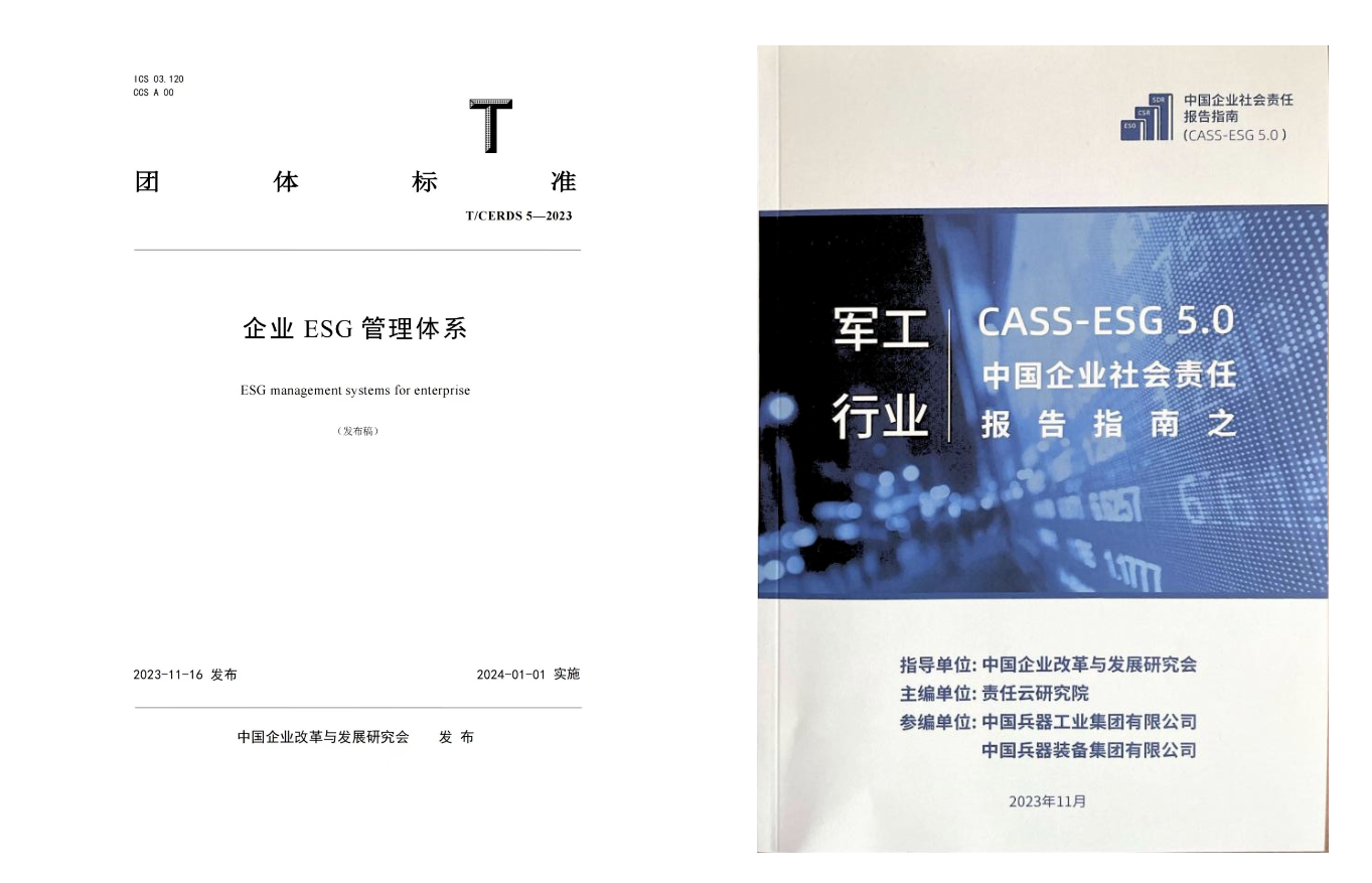 積極參與行業(yè)內(nèi)外社會責(zé)任生態(tài)建設(shè)。積極開展社會責(zé)任相關(guān)研究。集團公司作為參編單位參與了國務(wù)院國資委組織中國質(zhì)量協(xié)會開展的《企業(yè)ESG評價指南》《企業(yè)ESG管理體系 要求》(團體標準)的編制工作,為ESG工作奠定堅實的基礎(chǔ)。組織兵器規(guī)劃院與社科院責(zé)任云研究院合作,開展了《軍工集團ESG管理體系研究》課題研究,結(jié)合軍工行業(yè)特點,搭建軍工集團ESG管理模型和指標體系。為提升對上市公司ESG報告編制的指導(dǎo)性,編制《集團公司ESG報告指南(2023)》(上市公司),為上市公司ESG報告編制提供全過程支撐。在“首屆中國上市公司可持續(xù)發(fā)展大會”上,中國企業(yè)改革發(fā)展研究會發(fā)布了集團公司起草參編的《企業(yè)ESG管理體系》(T/CERDS5—2023)團體標準,在“2023中國企業(yè)社會責(zé)任報告峰會”上,正式發(fā)布了由集團公司參編支持的《中國企業(yè)社會責(zé)任報告指南(CASS-ESG5.0)之軍工行業(yè)》。