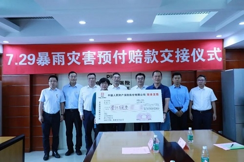 8月8日,集團(tuán)公司與人保財(cái)險(xiǎn)公司舉行北京7.29暴雨災(zāi)害預(yù)付賠款交接儀式,人保財(cái)險(xiǎn)公司提前向北方智能微機(jī)電集團(tuán)有限公司預(yù)付賠款1000萬元。8月9日,集團(tuán)公司在涿州召開保險(xiǎn)工作協(xié)調(diào)推進(jìn)會(huì),8月10日和11日,人保財(cái)險(xiǎn)公司確定近期將分別向河北亞大汽車塑料制品有限公司和闊丹凌云汽車膠管有限公司預(yù)付賠款1000萬元。