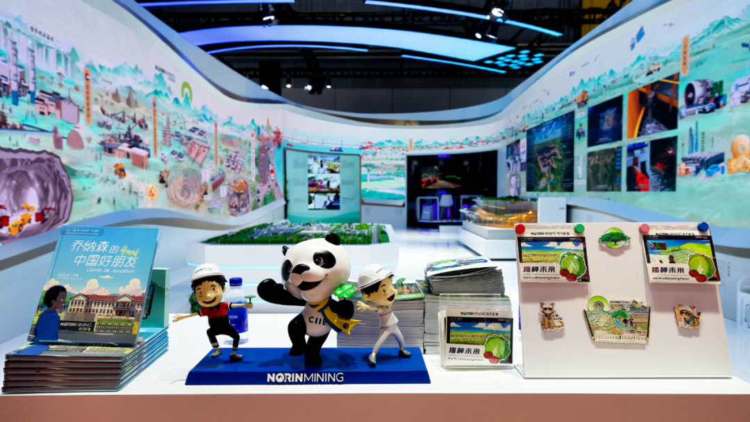 北方礦業(yè)組展展區(qū)以《千里江山圖》為創(chuàng)意,生動呈現(xiàn)了六個海外項(xiàng)目及礦產(chǎn)品貿(mào)易業(yè)務(wù),全方位展示了智慧礦山核心構(gòu)成,演繹“綠水青山就是金山銀山”的礦業(yè)新篇。