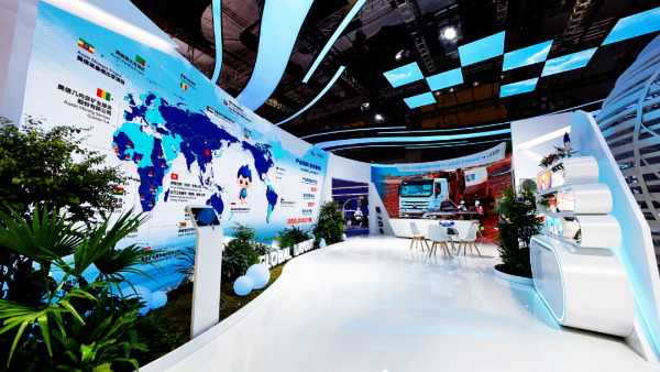 北方國際組展展區(qū)創(chuàng)新使用5D穹幕電影、UI互動屏幕、2.5D墻上沙盤等手段,綜合展示國際化經(jīng)營與共建“一帶一路”的豐碩成果,尤其是在電力全形態(tài)領(lǐng)域的投資及工程服務(wù)領(lǐng)域的專業(yè)能力,圍繞礦產(chǎn)資源的全產(chǎn)業(yè)鏈一體化工程服務(wù)水平以及軌道交通等領(lǐng)域以系統(tǒng)集成為核心的國際工程承包業(yè)務(wù)。